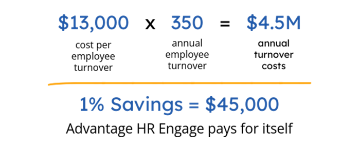 With these numbers, Vicky demonstrated how Advantage HR EngageTM orientation would more than pay for itself over time, and the buy-in she needed followed shortly.